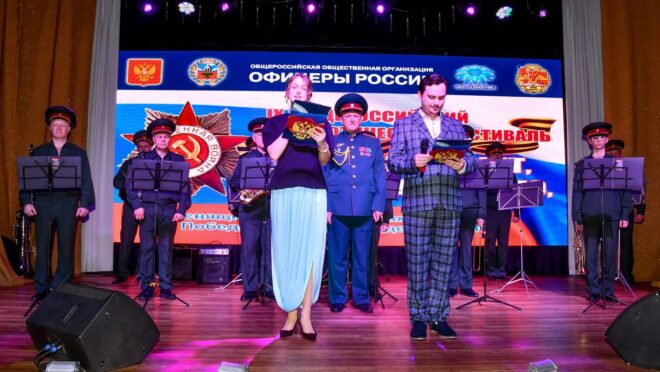 После обеда состоялся грандиозный гала-концерт из лучших выступлений участников фестиваля. Он получился ярким и запоминающимся. Завершающим номером было выступление всех членов жюри и членов организации «ОФИЦЕРЫ РОССИИ», которые традиционно исполнили песню «День Победы». С первого куплета весь зал встал и пел вместе с ними. Эмоции зашкаливали.