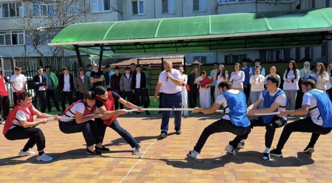 Участниками мероприятия стали студенты первого курса Международного открытого колледжа современного управления имени М.М. Абрекова. Они состязались по нескольким видам спорта – бег, отжимание, подтягивание на турнике, приседание, упражнение с обручем, перетягивание каната. Исса Мамчуев также выступил главным судьей соревнований.