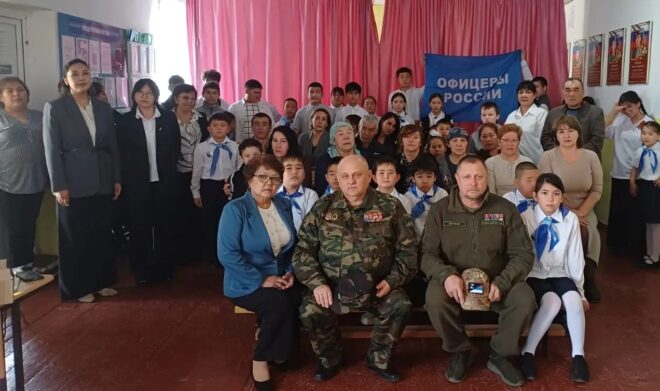Председатель президиума Астраханского регионального отделение «ОФИЦЕРОВ РОССИИ», почетный ветеран г. Астрахани полковник Анатолий Салин и руководитель исполкома регионального отделение «ОФИЦЕРОВ РОССИИ», почетный ветеран г. Астрахани подполковник Вадим Поликарпов приняли участие в торжественном мероприятие, которое прошло в школе им. Даниила Азербаева села Болдырево Володарского района.