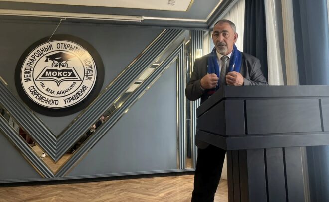 Председатель президиума регионального отделения «ОФИЦЕРОВ РОССИИ» в Карачаево-Черкесской Республике подполковник в отставке Исса Мамчуев провел тематическое занятие со студентами Международного открытого колледжа современного управления имени М.М. Абрекова.