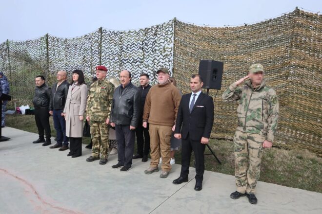Финальным этапом стала военизированная эстафета, где участники прошли несколько рубежей: экипировались в средства бронезащиты, преодолевали дистанцию с учебными автоматами, выполняли норматив по сборке-разборке, метали муляжи учебных гранат из укрытия и поражали мишени из пневматической винтовки.