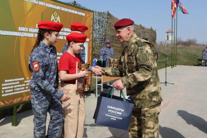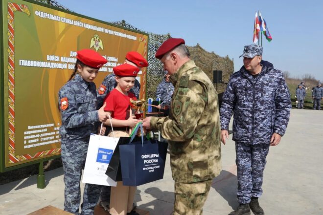 На базе учебного центра Главного управления Росгвардии по Краснодарскому краю прошло военно-патриотическое мероприятие, объединившее более 100 школьников и студентов из Абинска, Усть-Лабинска, станицы Динской и города Адыгейска Республики Адыгея. Встречу приурочили к 10-летию ведомства и 215-й годовщине образования войск правопорядка.