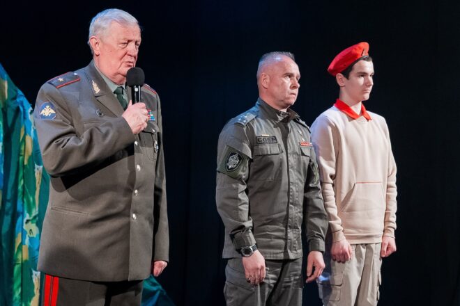 С напутственными словами к присутствующим в зале обратились почетные гости – председатель Совета по патриотическому воспитанию «ОФИЦЕРОВ РОССИИ», Герой России полковник полиции Александр Головашкин, депутат Совета депутатов Одинцовского городского округа Вячеслав Киреев, советник главы Одинцовского округа генерал-майор запаса Михаил Солнцев, главный режиссер Молодежного театра «Крылья» Ольга Кобецкая. Они также напомнили о подвиге нашего народа в войне с фашистскими захватчиками, в том числе и о тяжелых боях на Ржевском рубеже.