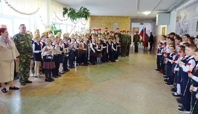 Руководитель исполкома Новосибирского регионального отделения «ОФИЦЕРОВ РОССИИ», член Общественной палаты Новосибирской области полковник внутренней службы в отставке Юрий Соловьев принял участие в патриотической акции «Часовой у Знамени Победы», которая прошла в гимназии №9 имени Героя России М.Ю. Немыткина.