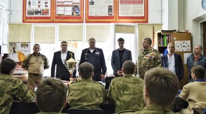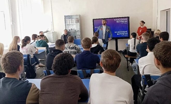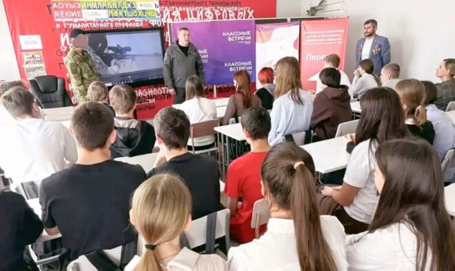 Еще ряд патриотических встреч Александр Касмылин, член организации Назир Амиров и офицер ОМОН «Святогор» провели в школе №5 села Прикомское и школе №19 села Побегайловка.