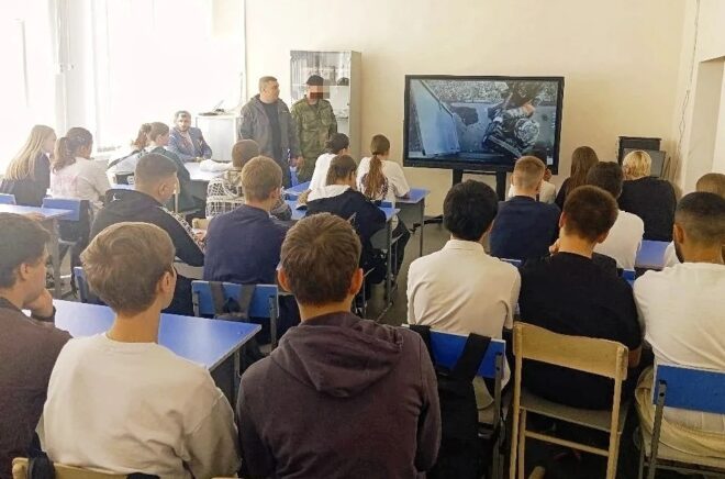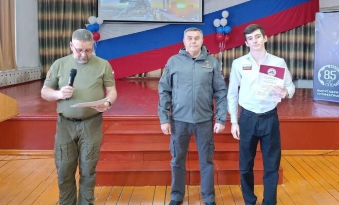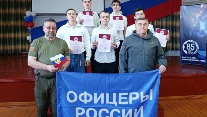 Так, ветераны провели урок мужества для студентов Минераловодского регионального многопрофильного колледжа. В мероприятии приняли участие председатель президиума местного отделения «ОФИЦЕРОВ РОССИИ» Георгий Остапенко, члены президиума Олег Сапелкин и Елена Сапелкина, заместитель руководителя исполкома местного отделения Юрий Юсупов, председатель президиума местного отделения «ОФИЦЕРОВ РОССИИ» в городе Невинномысске Александр Загорулько и член президиума Сергей Костюк, которые поделились боевым и жизненным опытом.